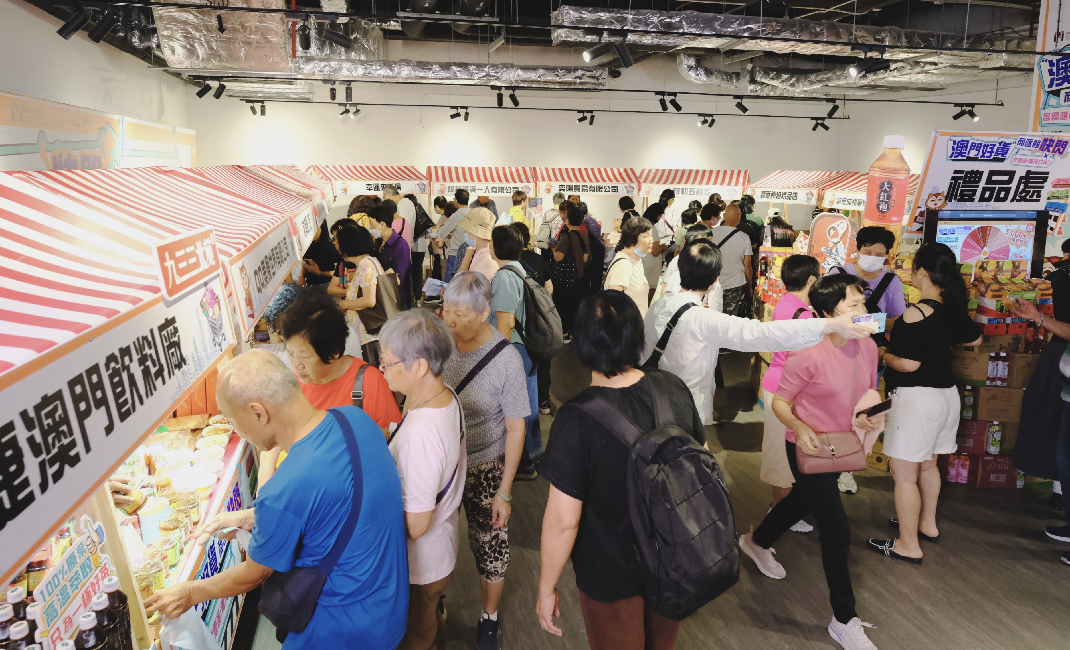 Os produtos expostos no evento de flash mob são variados, abrangendo, nomeadamente, biscoitos, frutas secas, bebidas, sacos de chá, molhos, massas, produtos de cuidados de saúde e acessórios, entre outros. A mascote “Pou Kong Ieng” do IPIM também irá fazer um flash mob de surpresa para interagir e tirar fotografias com o público durante o evento.